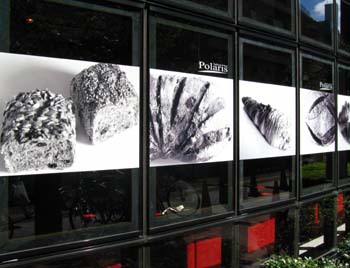 先日、東京・三鷹市にオープンしたベーカリー『ポラリス』にいってきました。JR中央線・三鷹駅南口を出て、商店街を10分ほど歩き、商店もまばらになり始める場所に、あります。通りから少し奥まったビルの入り口に「Polaris」のロゴ。ガラスばりの壁にはモノクロのパンの写真のパネルが何枚も掲げられていて、まるで『美術館』のような感じでした。 中を覗き込むと、カフェで楽しそうにパンを食べている人たちの姿で、いっぱいでした。さらに、その奥のスペースには、パンがたくさん並んでいてました。照明がかなり落としてあって、薄暗い中にスポットライトを浴びたパンが鮮烈に浮かび上がっていて、とても印象的でした。9月8日にオープンしたばかり。総責任者は、東京・立川市で「ベーカリー・カフェ ムッシュイワン」の総指揮をとる小倉孝樹さん(取締役最高執行役員)です。 小倉さんは「『ムッシュイワン』は、私の師匠で、パン作りの根本を教わった『福田のおやじ』(日本のパンの基礎を築いたとされる故福田元吉氏)から教わったた技術を実践し、後世に伝えていくことが目的の店です。今回オープンしたポラリスでは、その基本をベースにして、自分なりの新しい色を出していけたらと思っています。新しいことにチャレンジしていく場にしたいと思っています」と話していました。