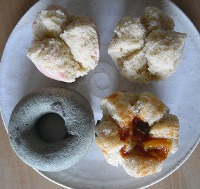 記者体験談 5月13日から6月2日、新宿マルイ本館1階で期間限定で出店していたので購入しました。ベースとなる生地がもっちりとした食感で、甘みはほのかに感じられる程度で食べやすい印象でした。「えだまめチーズ」は、具が全体にバランスよく入っているので最後まで楽しめました。「イタリア風ムシパン」は、具のトマトベースの味付けが程よく、生地自体の味も損なっていませんでした。「よもぎあんドーナッツ」も、もちもちとした食感の生地とつぶあんが一体化しており、おやつにぴったりな一品でした。 50種類以上のレシピの中から毎日20〜25種類ほどセレクトして製造販売しているそうで、店頭は色とりどりのムシパンが並び、女性客の足を止めていました。 |